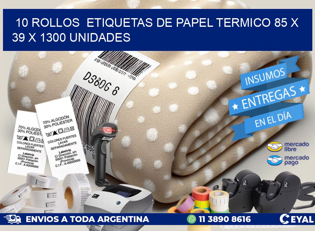 10 ROLLOS ETIQUETAS DE PAPEL TERMICO 85 x 39 X 1300 UNIDADES