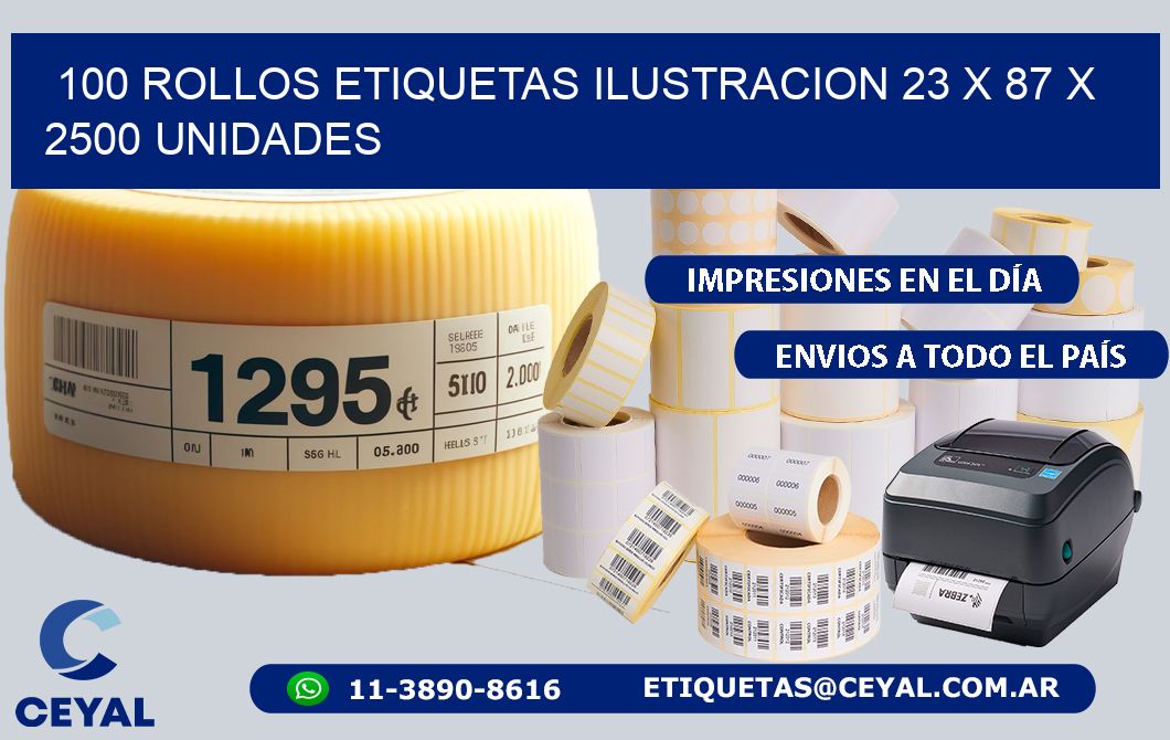 100 ROLLOS ETIQUETAS ILUSTRACION 23 x 87 X 2500 UNIDADES