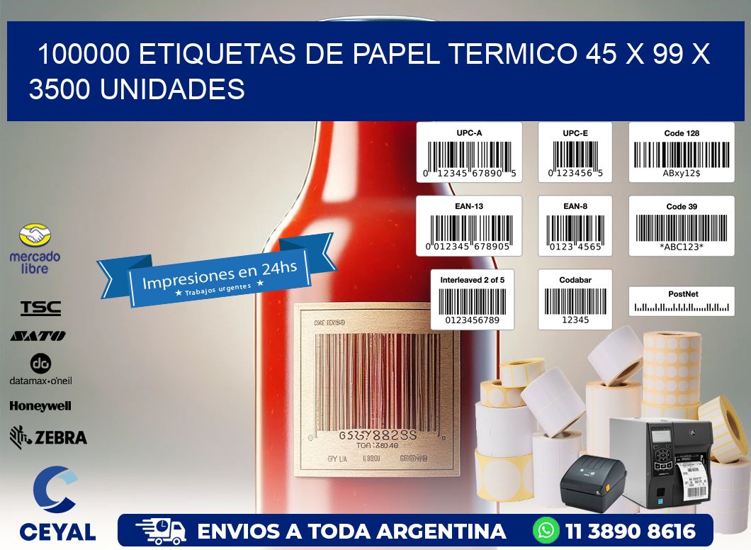 100000 ETIQUETAS DE PAPEL TERMICO 45 x 99 X 3500 UNIDADES