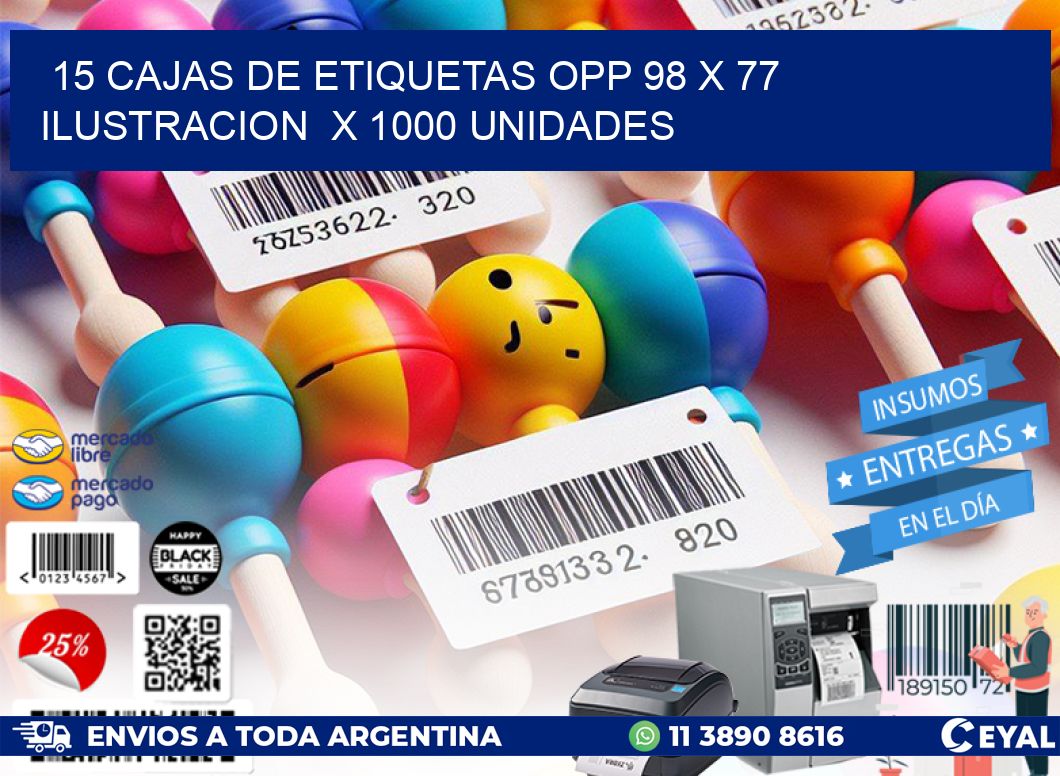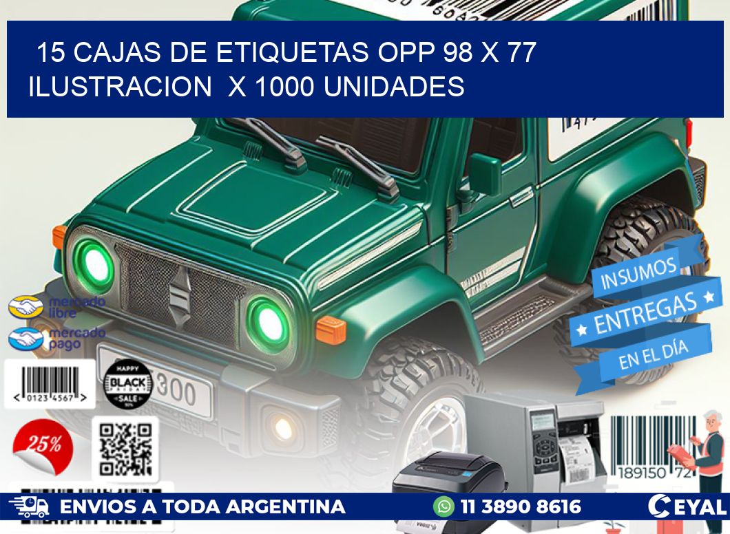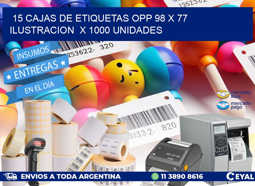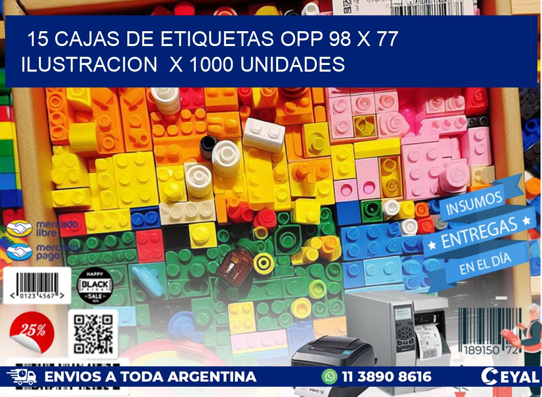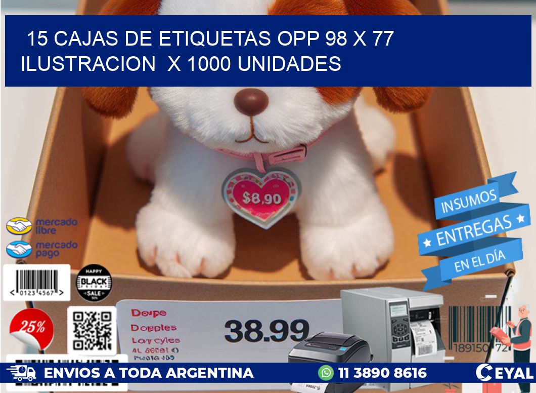 15 CAJAS DE ETIQUETAS OPP 98 x 77 ILUSTRACION X 1000 UNIDADES