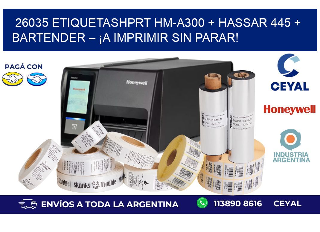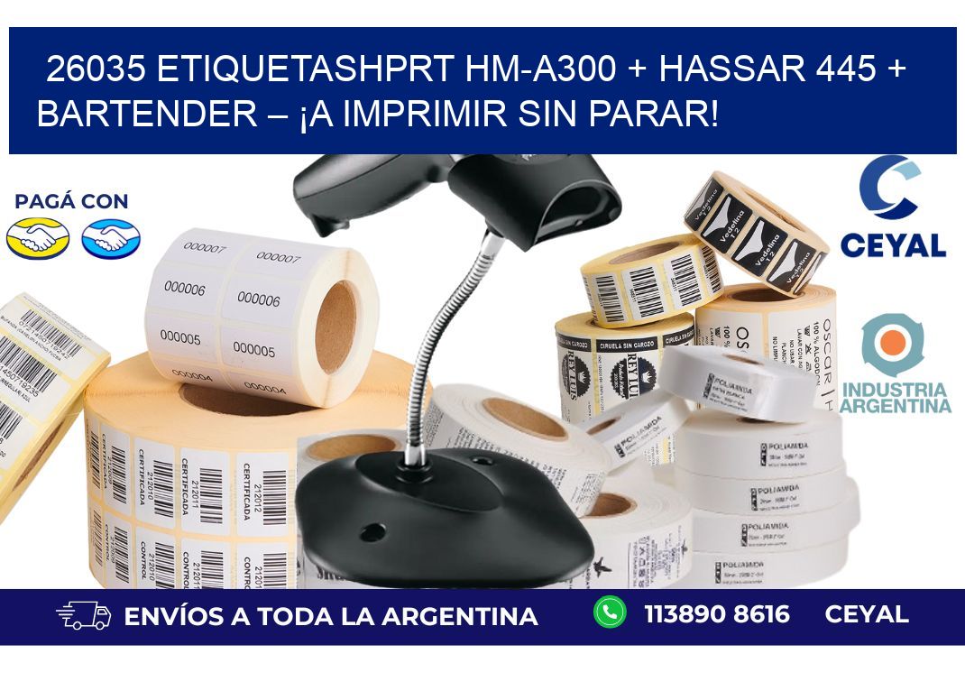 26035 ETIQUETASHPRT HM-A300 + Hassar 445 + BarTender – ¡A imprimir sin parar!