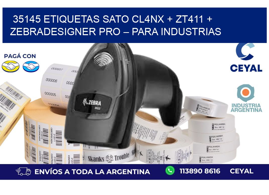 35145 ETIQUETAS SATO CL4NX + ZT411 + ZebraDesigner PRO – Para industrias