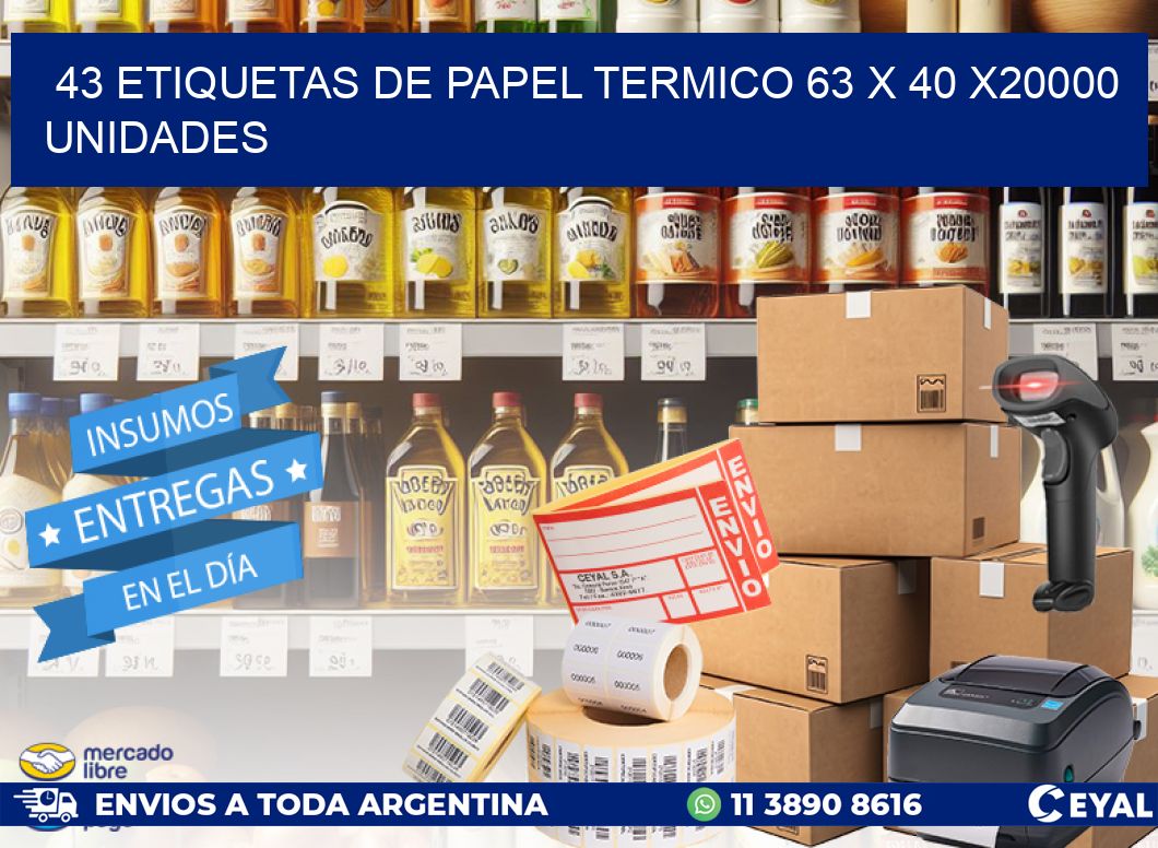 43 ETIQUETAS DE PAPEL TERMICO 63 x 40 X20000 UNIDADES