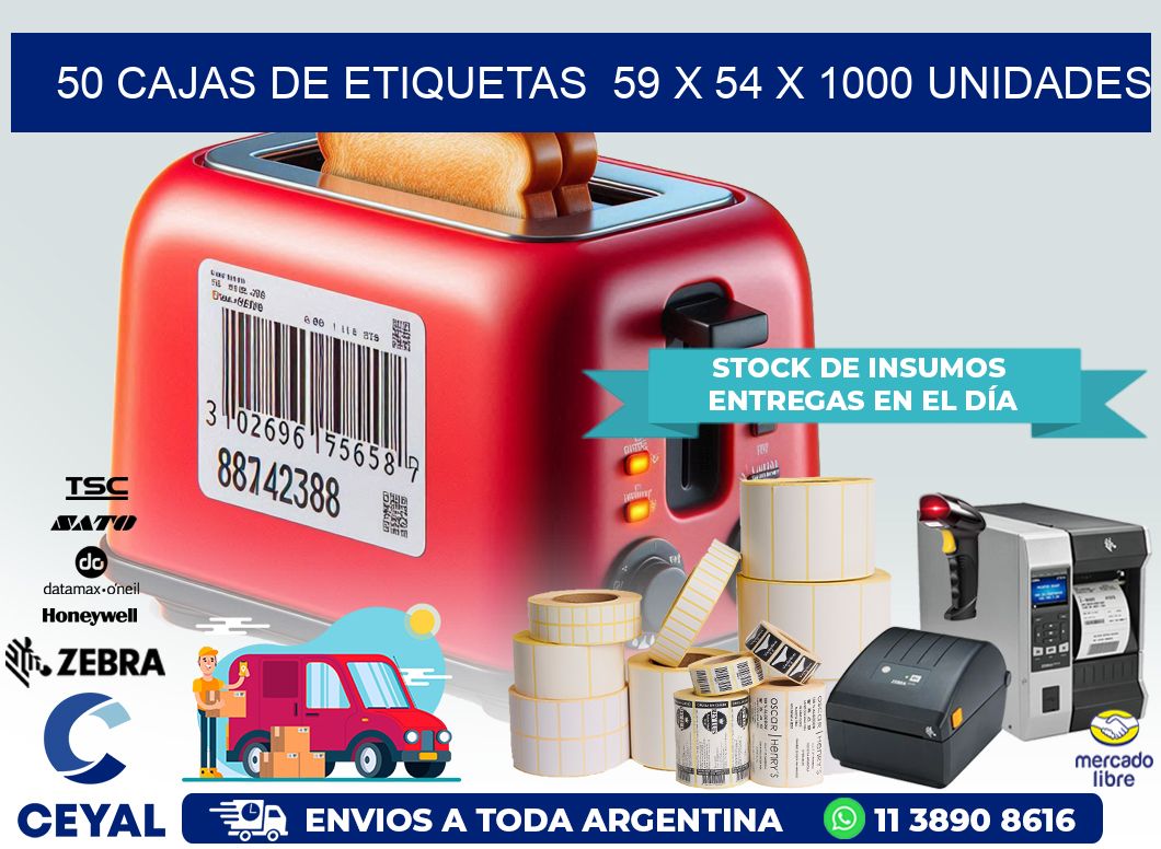 50 CAJAS DE ETIQUETAS 59 x 54 X 1000 UNIDADES