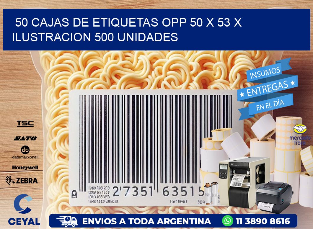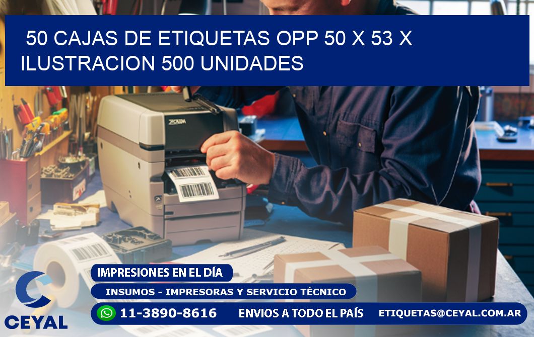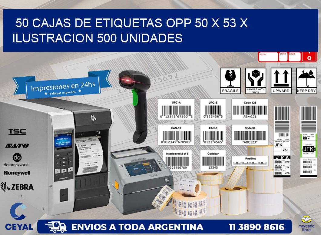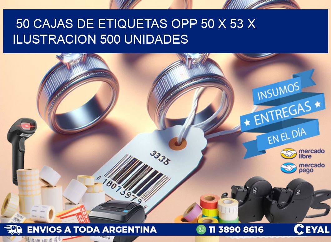 50 CAJAS DE ETIQUETAS OPP 50 x 53 X ILUSTRACION 500 UNIDADES