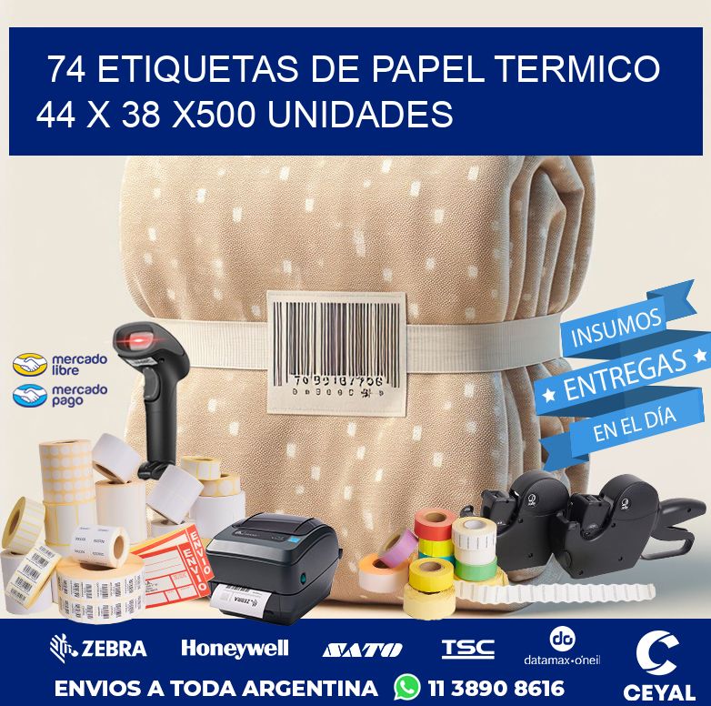 74 ETIQUETAS DE PAPEL TERMICO 44 x 38 x500 UNIDADES