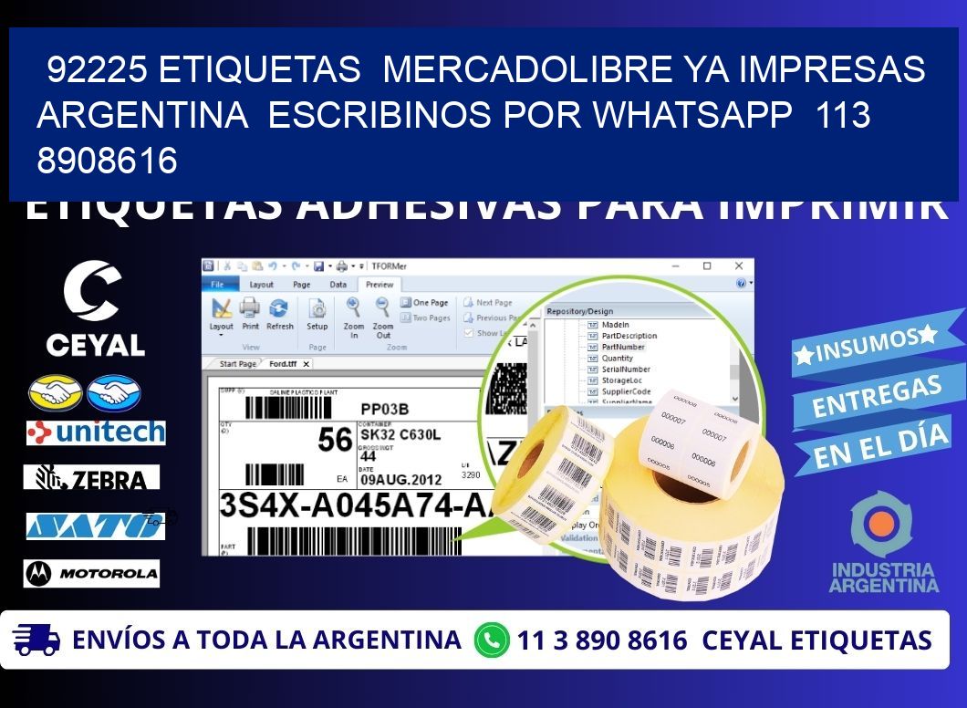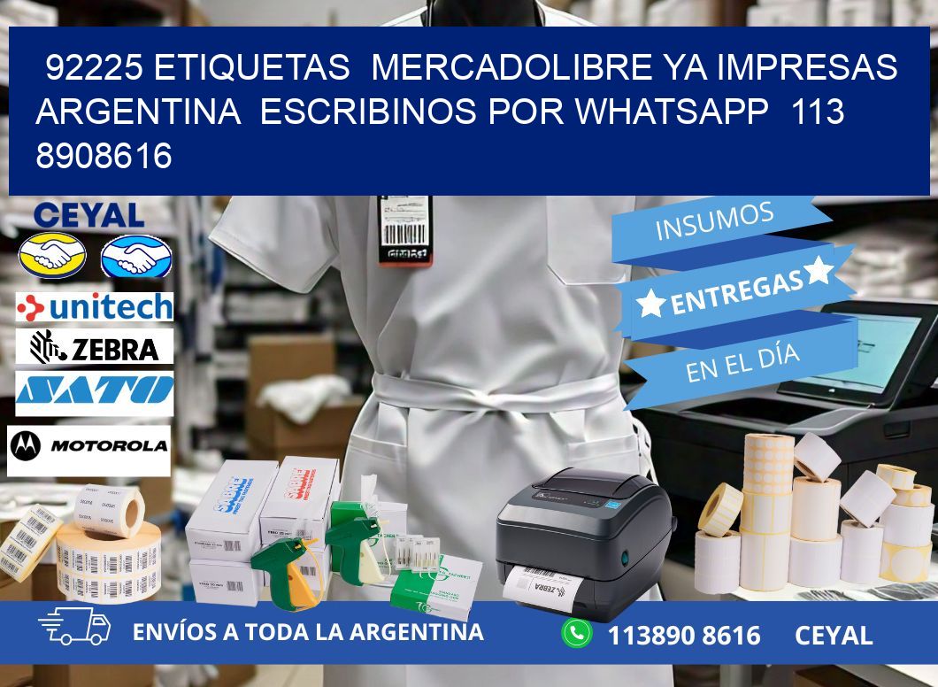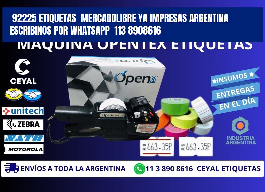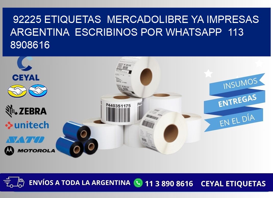 92225 ETIQUETAS MERCADOLIBRE YA IMPRESAS ARGENTINA ESCRIBINOS POR WHATSAPP 113 8908616