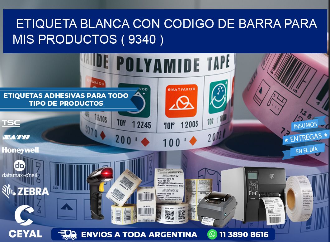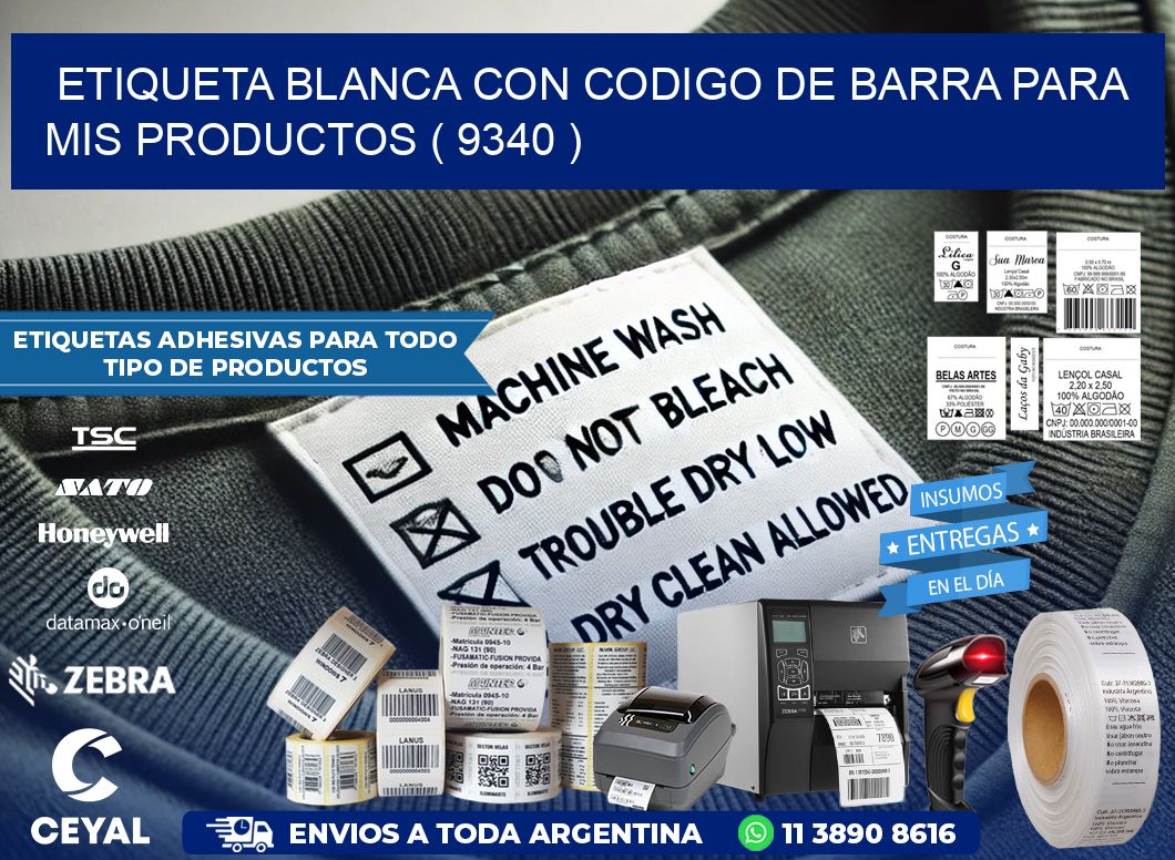 ETIQUETA BLANCA CON CODIGO DE BARRA PARA MIS PRODUCTOS ( 9340 )