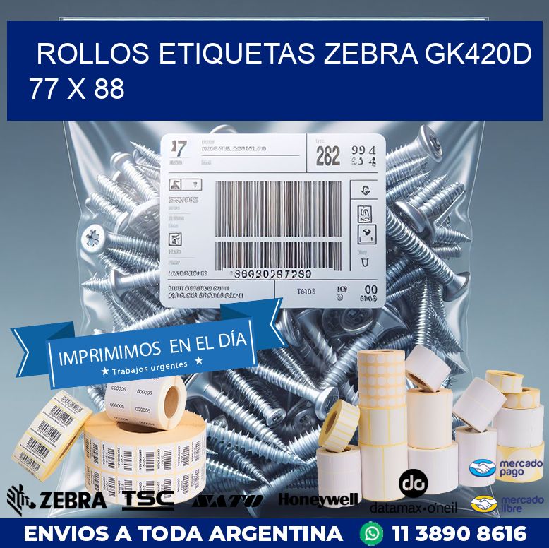 ROLLOS ETIQUETAS Zebra GK420D 77 x 88