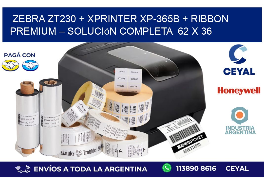 Zebra ZT230 + Xprinter XP-365B + Ribbon Premium – Solución completa 62 x 36